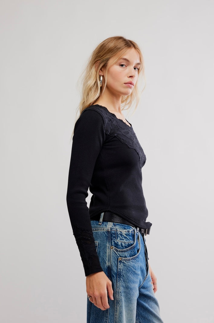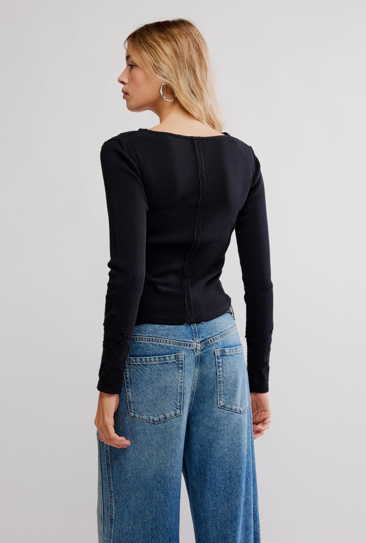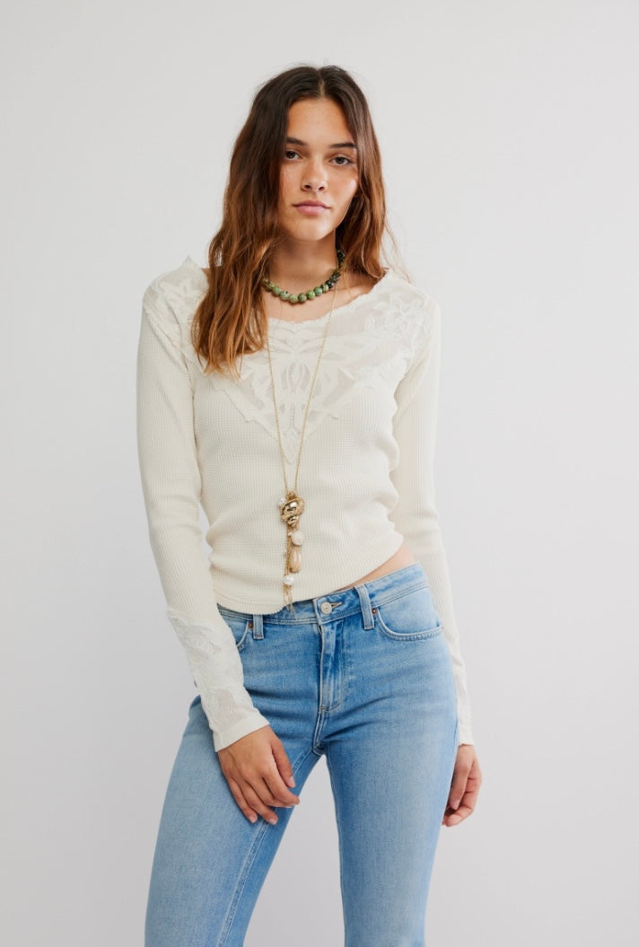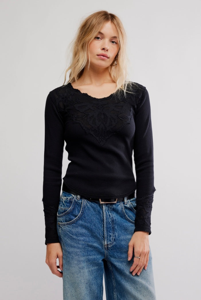 A need-now twist on an FP classic, this long-sleeve thermal features intricate embroidered mesh at the chest and cuffs for a signature, so-special look you can only find here.