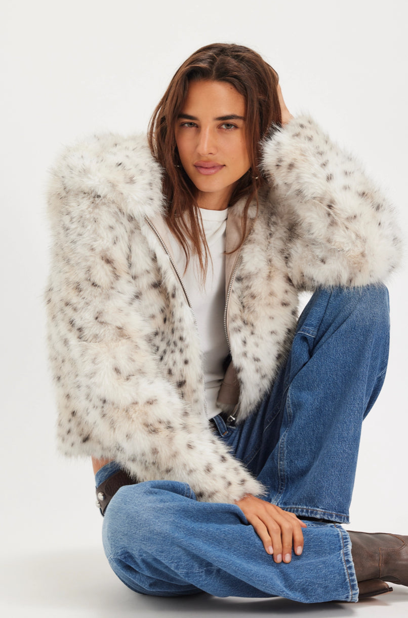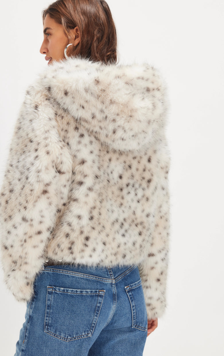 The lush life is all yours in this luxe fur jacket, featured in a faux style with an attached hood for extra cozy moments.